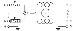 | Model No. | Rated Current @40°C | Terminal Options* | Bleeder resistor (optional) | G | Leakage current 250V/50Hz | Electrical Schematic | Rated Voltage(V) | Operating Frequency(Hz) | |||||||||||||||||||||||||||||||||||||